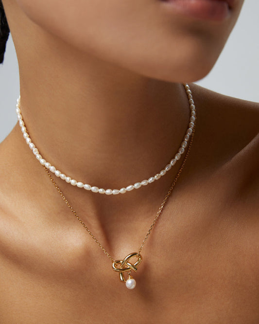 S925銀 18k鍍金 天然珍珠愛心蝴蝶結項鍊 情人節精選(雙色可選)