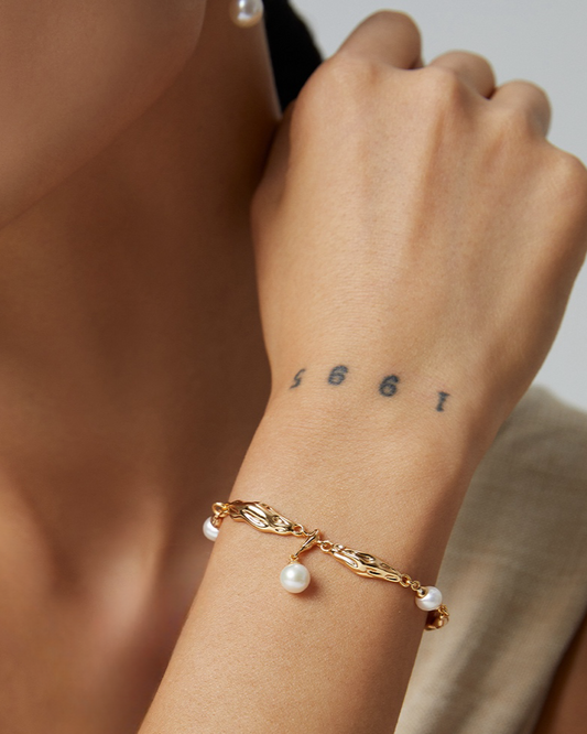 S925銀 18k鍍金 天然珍珠 絲巾款手鏈 (雙色可選)